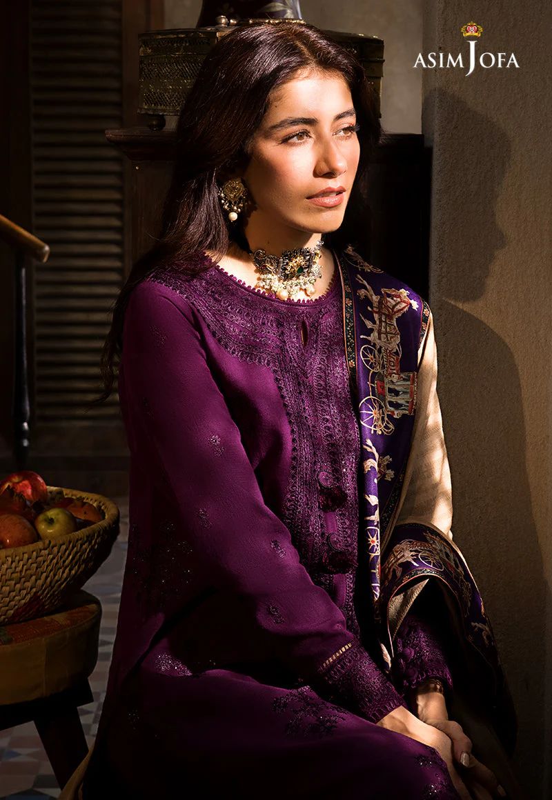 ASIM JOFA -3pc Unstitched Dhanak Chikankari Embroidered Suit DF-1666